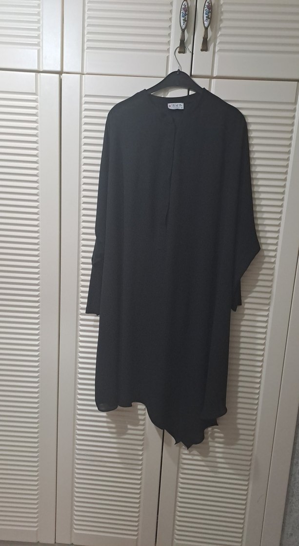 Siyah, uzun kollu, salaş kesim uzun tunik, yüksek yakalı ve dökümlü tasarıma sahip, pürüzsüz şifon sentetik kumaftan üretilmiştir. Günlük kullanım için uygun minimal ve sade bir modeldir.