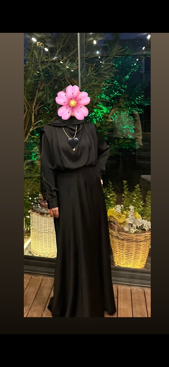 Siyah renkte, yüksek yakalı ve uzun kollu, bol kesim ve drapeli uzun elbisedir. İpeksi kumaştan yapılmış, aşırı rahattır. Özel günleriniz için kurtarıcı bir parçadır. 36-38-40 uygundur