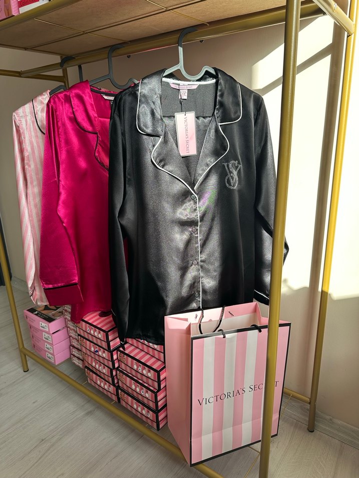 Siyah Uzun Kollu Saten Pijama Victoria secret