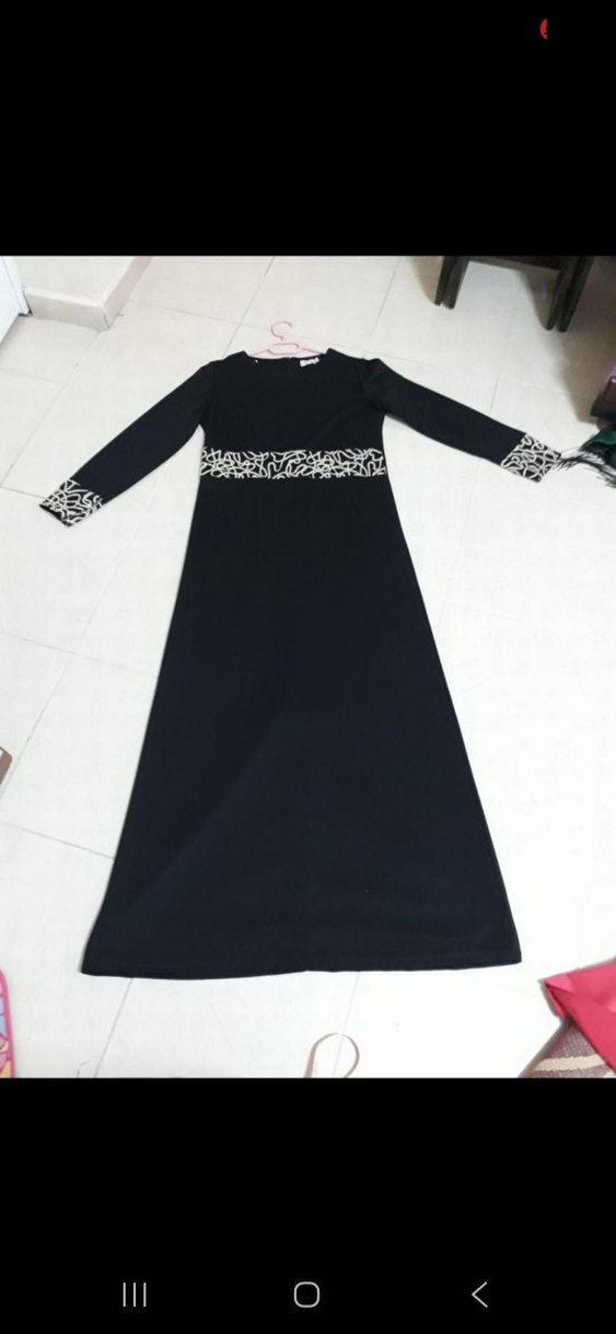 Siyah uzun elbise, uzun kollu ve tekne yaka detaylıdır. Bel ve kollarında baskılı dantel süslemeleri vardır, gotik ve modest tarz için uygundur. Bir iki kez kullanıldı.