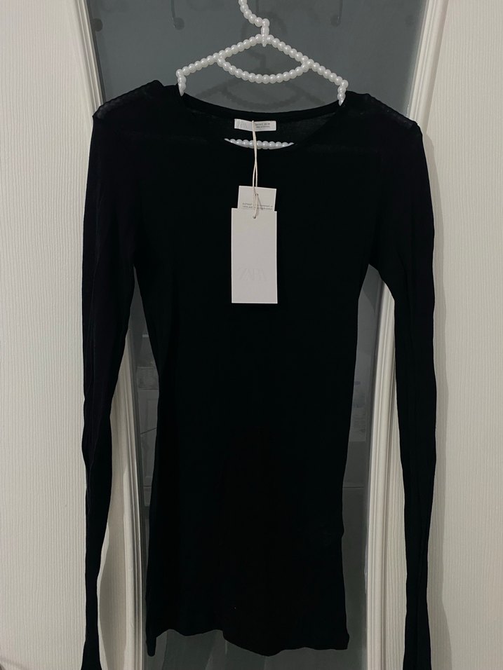 Uzun kollu, bisiklet yakalı ve ipeksi dokulu siyah kadın bluz. Hiç giyilmedi etiketli tertemiz.