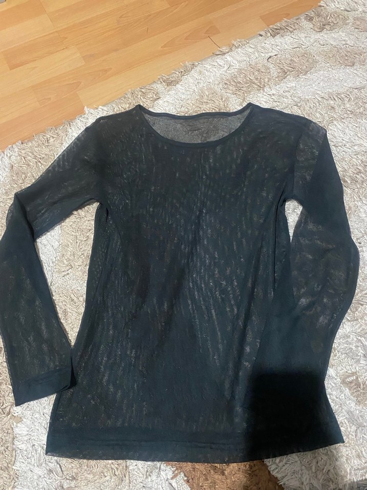 Siyah, ince triko dokulu, uzun kollu ve bisiklet yaka, dar kesim bluz. Gotik tarzda, günlük kullanıma uygun bir parça.