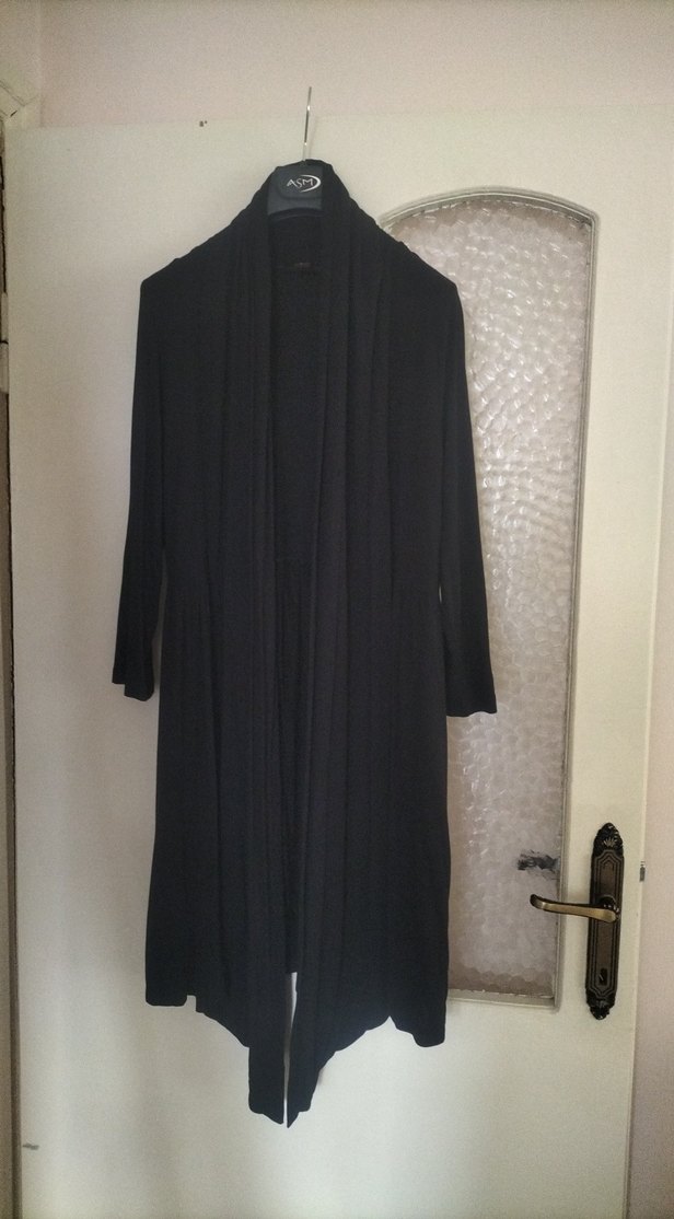 Uzun kollu, regular fit siyah ceget, minimalist goth tarzında sade ve koyu renkte tasarlanmıştır.