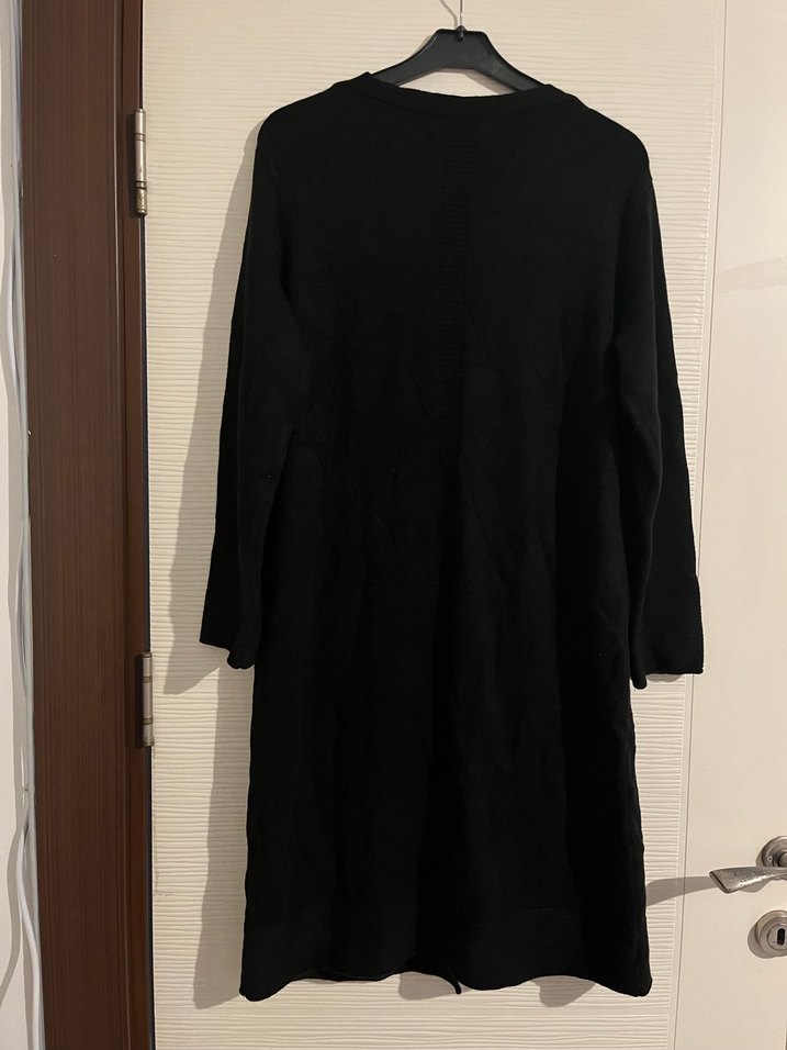 Siyah renkte, uzun kollu, V yakalı ve triko kumaştan üretilmiş bol kesim, drapeli kadın triko hırka Minimalist gotik tarzıyla günlük kullanım için uygundur.çok iyi durumda