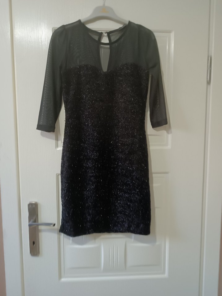 Siyah, uzun kollu ve V yakalı bu fitted midi elbise, pul payet detaylarıyla romantik akşamlar için uygun. Gotik tarzıyla avant-garde bir dokunuş sunar.
