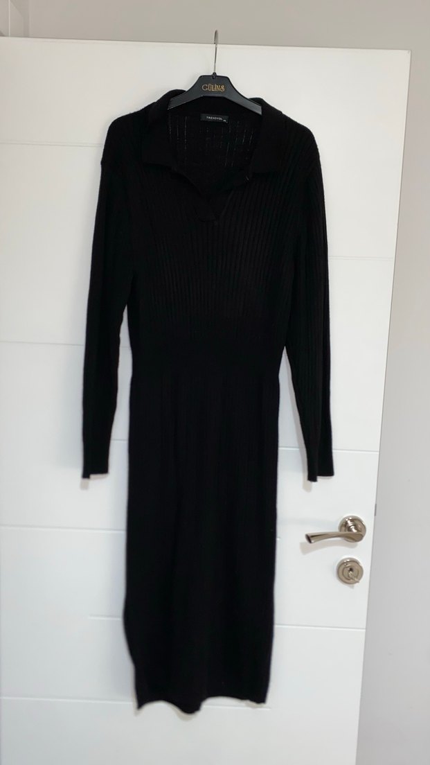 Siyah Uzun Kollu V Yaka Triko Elbise
