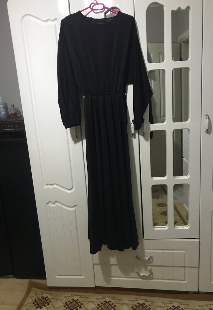 Siyah Uzun Kollu V Yaka Uzun Elbise