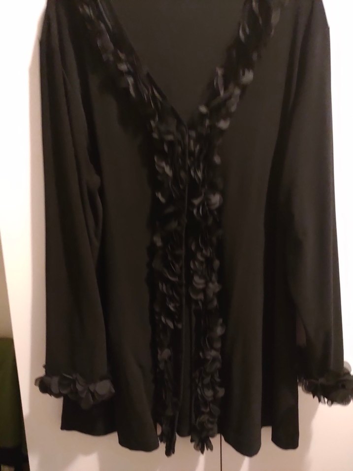 Siyah Uzun Kollu yaka ve kollar çiçek tüllü hırka