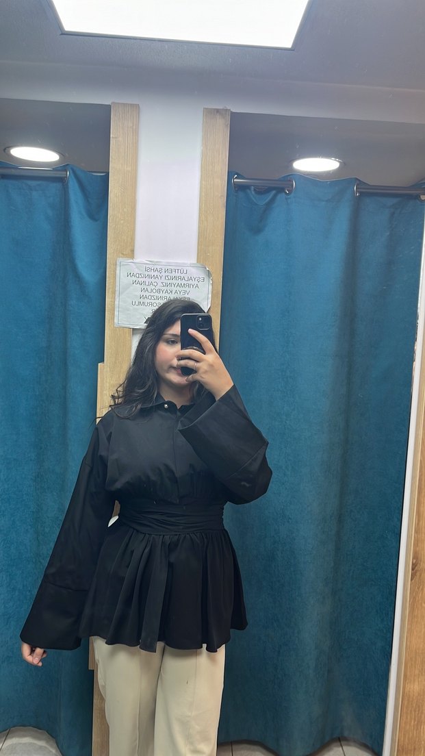 Siyah Uzun Kollu Yüksek Yaka Midi Elbise veya gömlek kuşaklı