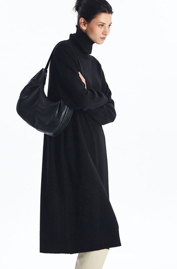 Siyah Uzun Kollu Yüksek Yakalı Elbise