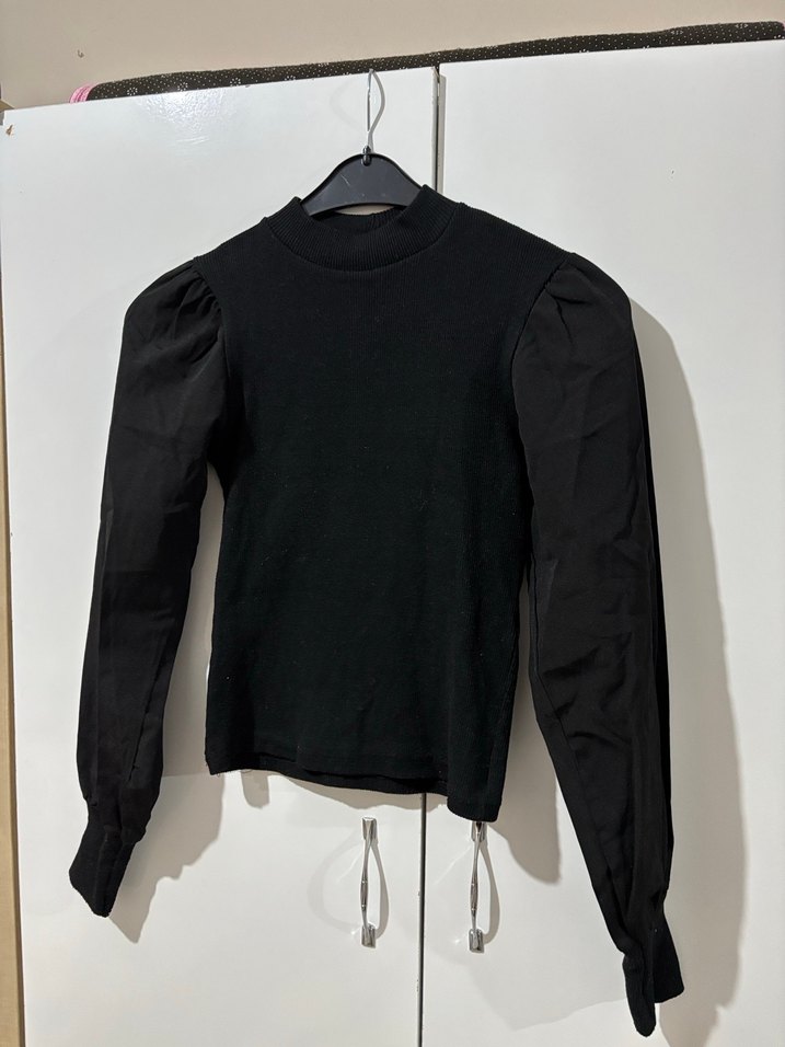 Siyah Uzun Kollu Yüksek Yakalı Kadın Bluz