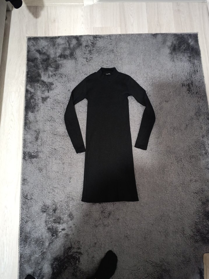 Siyah, uzun kollu ve yüksek yakalı bu dar kesim uzun elbise, yumuşak ve sıcak kumaştan yapılmıştır. Minimalist tasarımıyla günlük kullanıma uygundur ve zahmetsiz şıklık sunar.