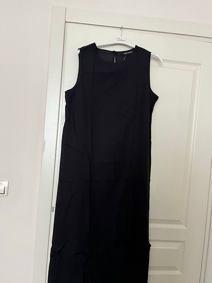 Siyah, kolsuz, bisiklet yaka ve regular fit uzun elbise. İpeksi dokusu ve sade tasarımıyla gündelik kullanıma uygundur. Minimalist ve normcore stil için idealdir. ✨ hiç kullanmadık bence içine astar yapılsa daha güzel olur benden 38 ama 42 ye kadar olur bence. MağaAda 750 tl uyguna bırakıyorum