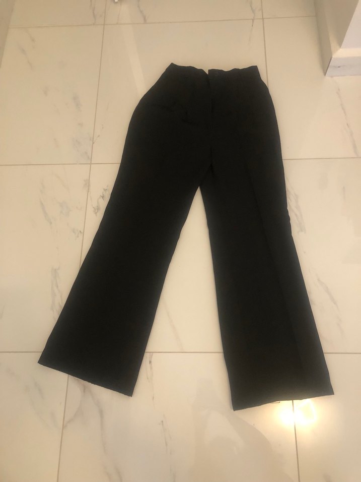 Siyah uzun boy, geniş paça kumaş pantolon. ofis ve günlük kullanıma uygundur.