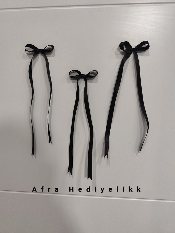 İnce siyah saten fiyonk kurdeleler 5 adet fiyatıdır. İstenilen sayıda yapılır. Uzunluk 20 cm dir