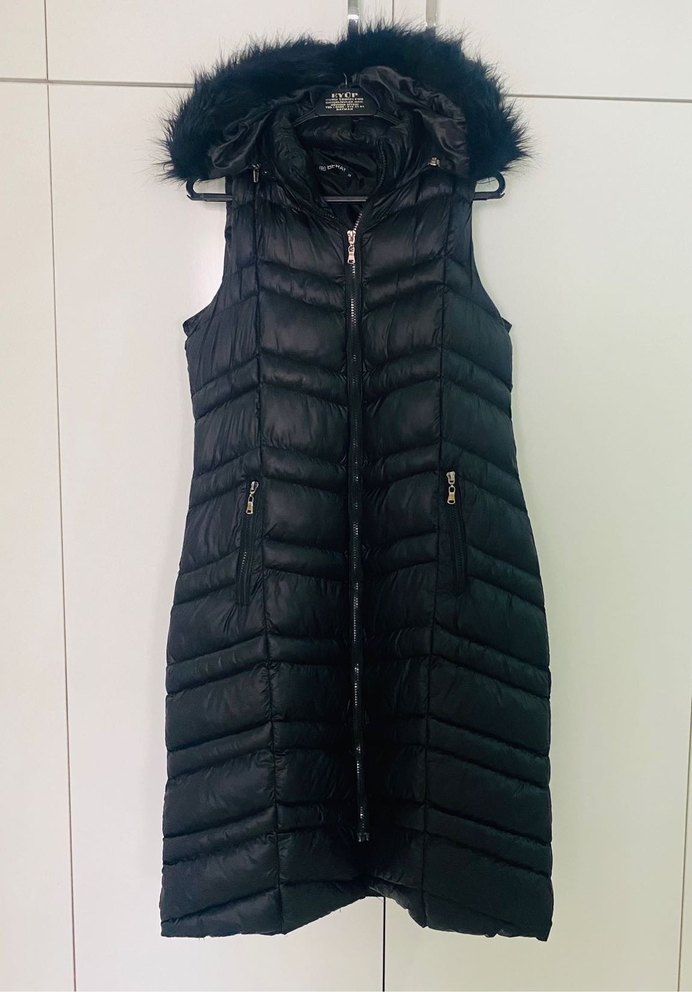 Kürklü kapüşonlu, yüksek yakalı, uzun siyah kadın yeleği. Dar kesim ve sentetik kumaştan üretilmiştir, rahat sokak stili için uygundur. Kürklü detaylara sahip, yüksek yakalı, uzun kesim ve dar kalıplı siyah kadın yelek. Yumuşak sentetik kumaştan üretilmiştir, gündelik kullanıma uygundur. #ikilitakım #tunik #ykz #ykzceylan #senna #mango #seçil #n #beymen #bershka #seçil #setrms #Vakko #sedatiryaki #gizce #kaban #yelek #mont #şişmemont boy:105, iki kol arası: 52