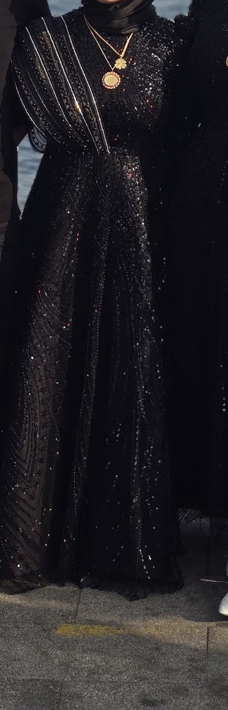 Drapeli,siyah desenli, uzun ve vücuda oturan gotik tarzda abiye elbisedir. Gece kıyafeti için uygundur. ✨Beden 42-44 uyumludur. Boy 1.58 Kilo 64 olarak kullanıldı sadece 2 saat evde giyildi.Alıcısına hayırlı olsun.