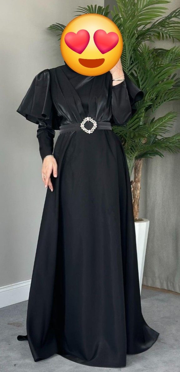 Siyah Uzun pelerin kol parlak Kadın Abiye Elbise bir kere giydim