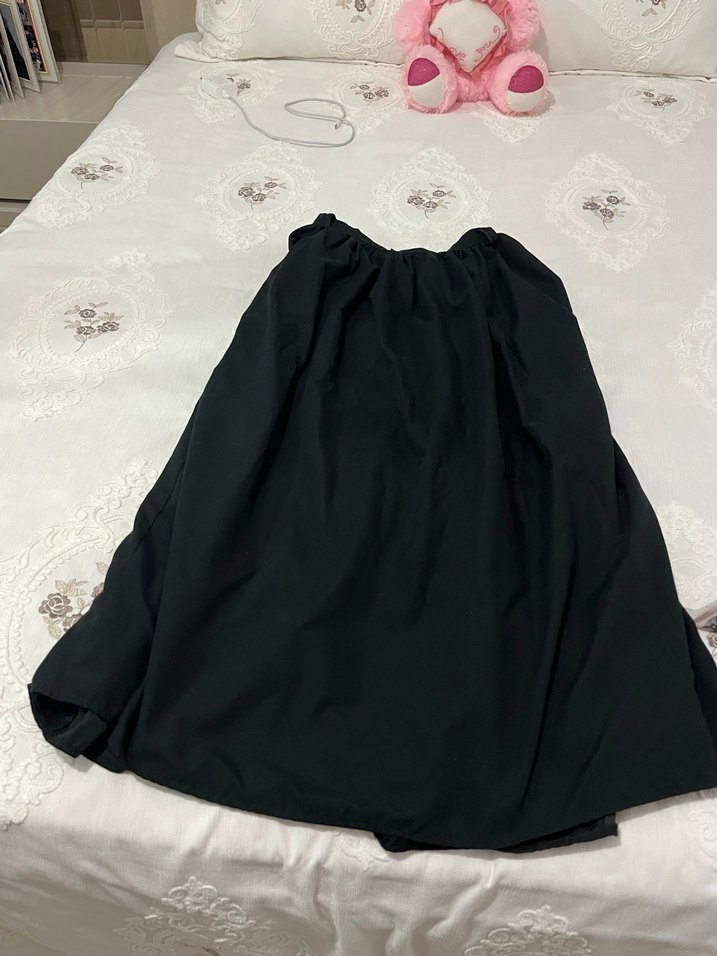 Siyah uzun, salaş kesim ve drapeli tasarıma sahip etek. Yumuşak sentetik kumaştan üretilmiştir. Günlük gotik stil için uygundur.