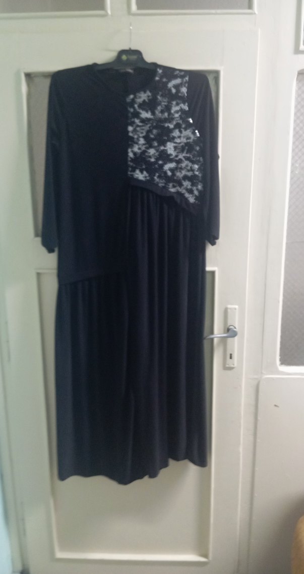 Siyah uzun, salaş kesim elbise, drapeli detaylara sahip. Askısız yaka ve ince askılı kollu, yumuşak kumaştan yapılmış, gotik tarzda şık bir tasarım. İki kol arası: 50 cm Elbise Boyu: 134 cm Kol Boyu. : 52 cm Ürünü satın alarak DMD kas hastası Turan Ünal'ın tedavisine katkı sağlamış olacaksınız...(31)