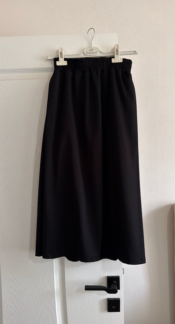 Siyah renkli, cepli, dökümlü ve salaş kesime sahip uzun kadın eteği, ipeksi dokusuyla minimalist gotik tarzını yansıtır.