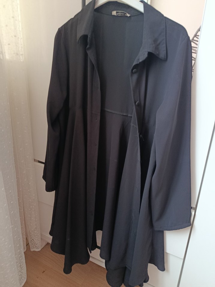 Siyah Uzun salaş lazer kesim ceket