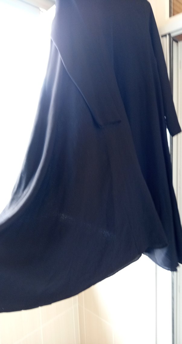 siyah renkte, uzun ve salaş kesimli, uzun tunik hem sade hem şık bir parça