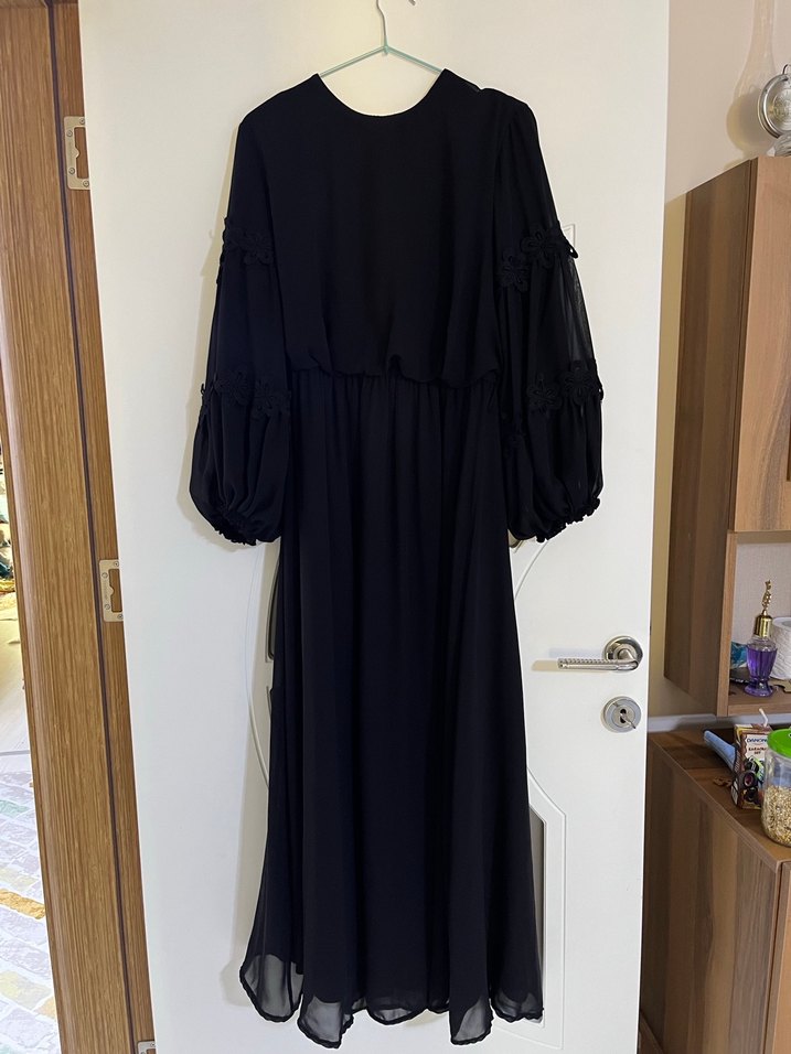 Siyah Uzun şıfon Kadın Elbise