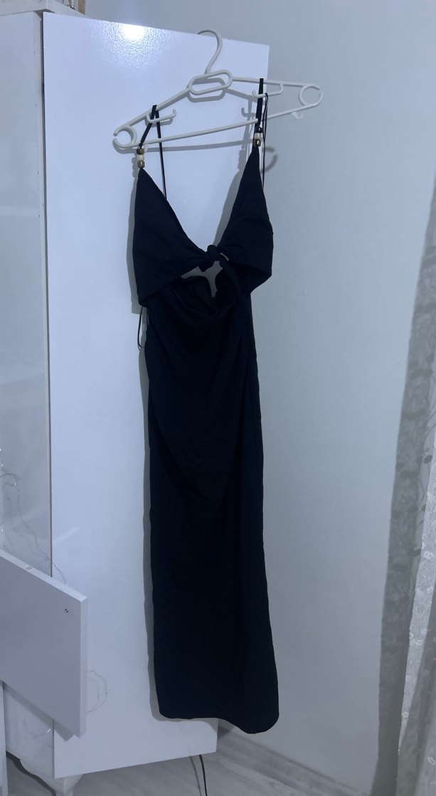 Siyah,Uzun, Sırt ve Göğüs detaylı boncuklu Kadın Elbise