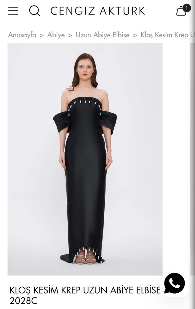 Siyah uzun abiye elbise, straplez yaka ve drapeli, askılı kollara sahiptir. Düzenli kesim ve parlak dokusuyla düğün ve avangart tarz için uygundur.