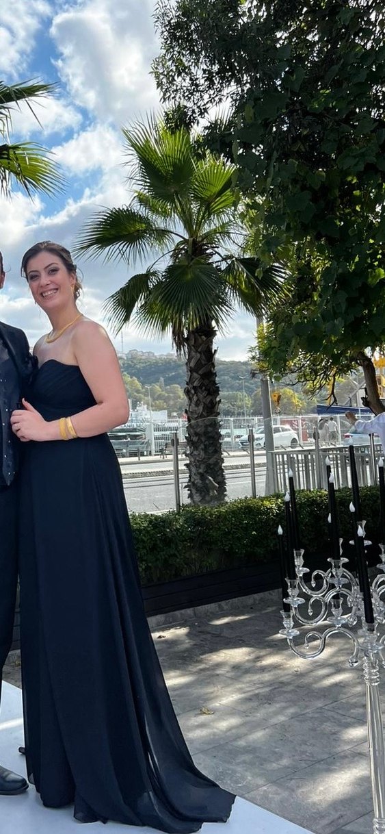 Siyah, uzun ve straplez mezuniyet elbisesi parlak dokunuşlu drapeli tasarıma sahiptir. Düzenli kesim ve askılı kollara sahip, klasik ve göz alıcı goth tarzını yansıtır. Önünde ki aksesuarı sonradan dahil ettim onuda göndereceğim