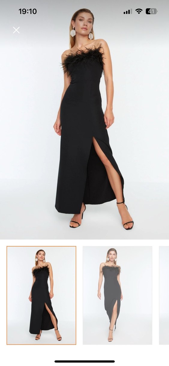 Siyah uzun tüylü straplez yırtmaçlı abiye elbise hiçbir problemi yok #tüylüelbise #yırtmaçlıelbise #trendyolmilla