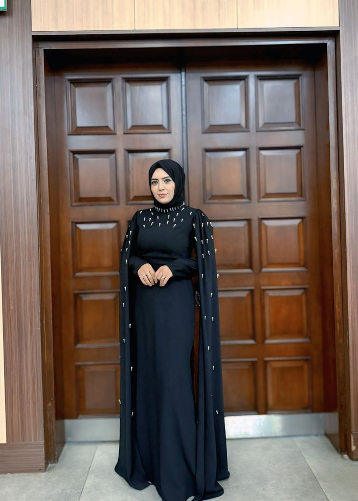 cok güzel ve çok ağır model 1 kere kullanıldı kuru temizleme yapilmadi ancak lekesi vs bisiyi yok, boydan kestirmedim çok uzun 164 boyla 10 11 cm topukluyla giydim ona rağmen yere değiyor ama rahatsız etmiyordu ben 63 kiloyla giydim ama bana boldu basen bel kısmı ama pelerinindrn belli olmuyor diye daraltmadim yakalı, uzun kollu, nakışlı ve drapeli detaylara sahip siyah uzun elbise, modest goth tarzıyla düğünler için uygundur.