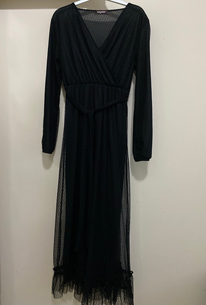 Siyah Uzun V Yaka elbise