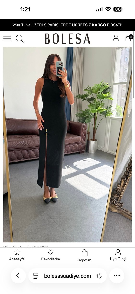 Siyah uzun, ince askılı ve V yaka elbise, yumuşak ve parlak kumaştan yapılmıştır. İş ortamı için şık yırtmaç detayına sahiptir. Bir kez kullandım yepyeni s m uyumlu