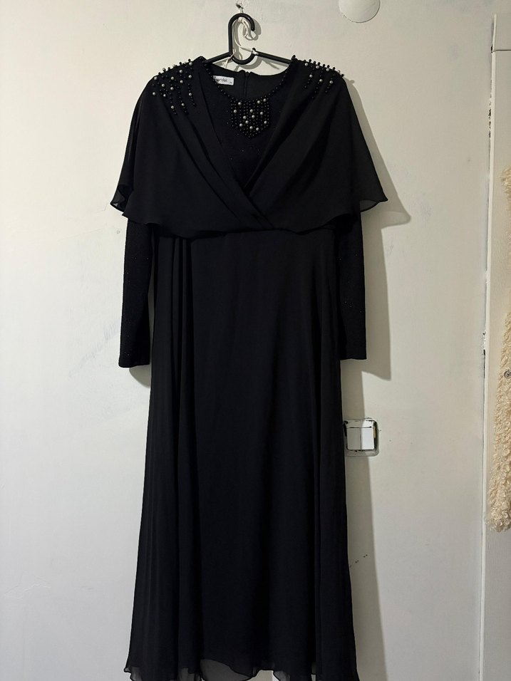 Siyah uzun, v yaka, drapeli, uzun kollu ve omuzları süslemeli gotik tarzda bol kesim elbisedir. Düğün gibi özel anlar için uygundur.