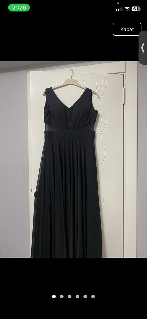 Siyah Uzun V Yaka Kolsuz Kadın Elbise