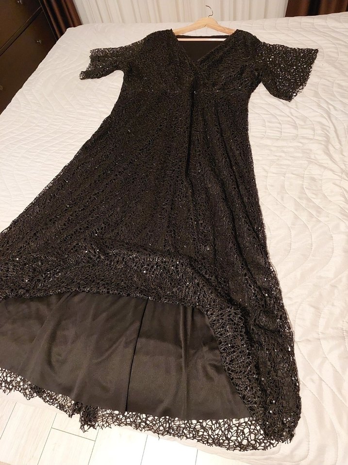 54 beden V yakalı, ince askılı, gotik tarzda, düğünler için uygun.