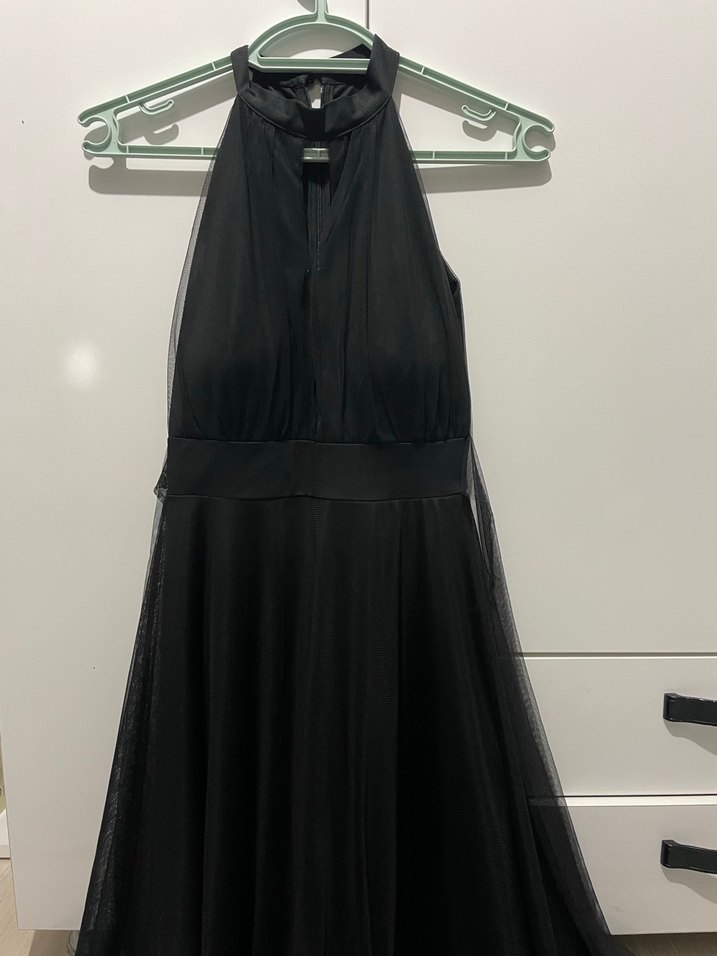 Siyah kısa V Yakalı Gotik Abiye Elbise