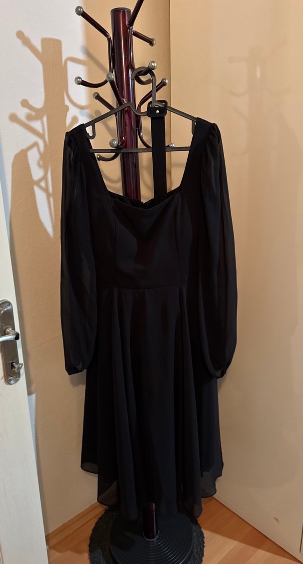 Siyah uzun elbise, satenimsi kumaş, bol kesim, drapeli V yakalı ve askılı kollu, romantik akşamlar için klasik zarafet sunar.