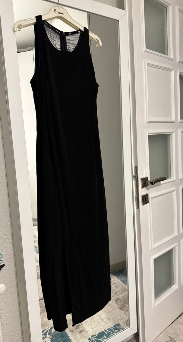 Siyah, satenimsi kumaştan, kolsuz ve yuvarlak yakalı, drapeli uzun ve dar kesim kadın elbisesi. Ofis için uygun goth tarzda.etiketini kesmişim.
