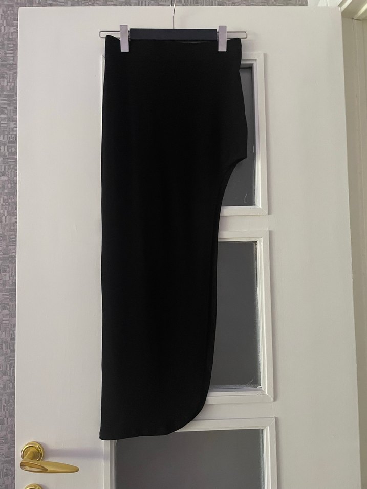 Siyah uzun etek, dar kesim ve yan yırtmaçlı, yumuşak ve esnek kumaştan, ofis,kokteyl,gece için uygun.