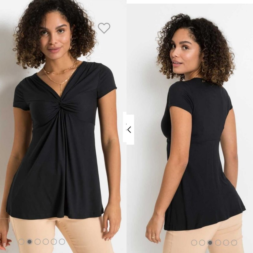 Siyah renkte, V yakalı ve kısa kollu, ince ve şık bluzu. Midi boyu ve modern tarzıyla günlük kullanıma uygundur. ✨
