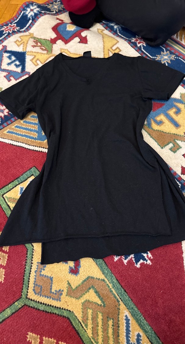 Yandan yırtmaçlıSiyah renkli, V yakalı ve kısa kollu hamile tunik. Yumuşak dokulu kumaştan, bol kesim ve uzun boy, günlük kullanım için rahat ve şık.