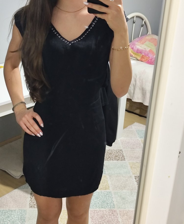 Siyah V Yaka Boncuk İşlemeli Midi Elbise