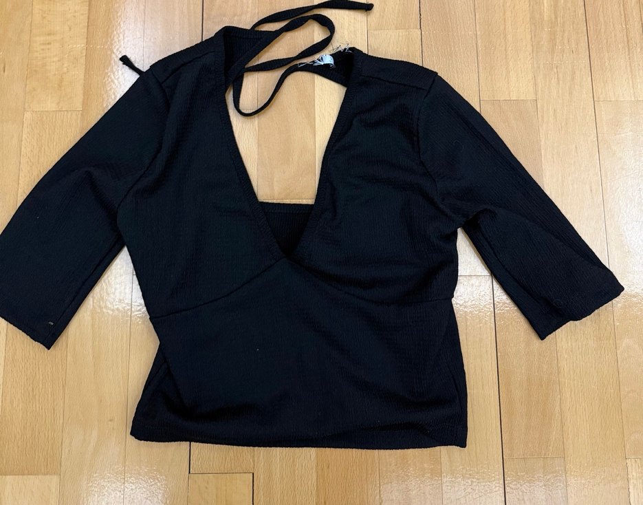 Siyah V Yaka crop Kadın Bluz