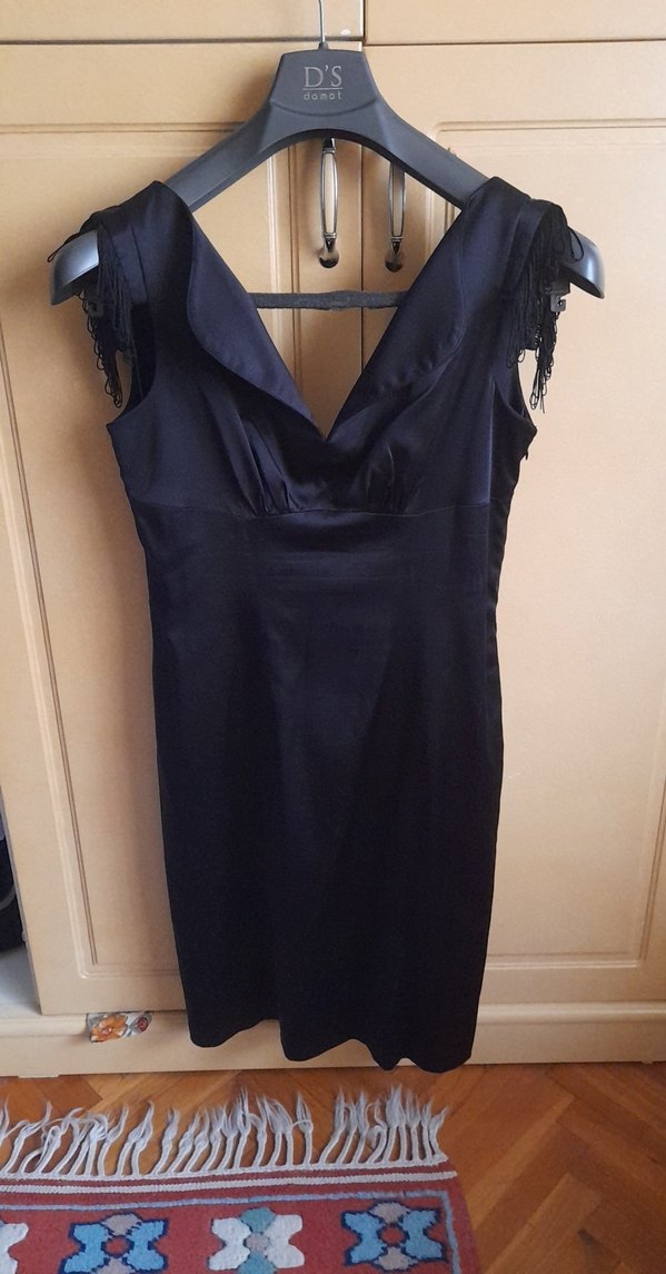 siyah v yaka dizalti saten elbise