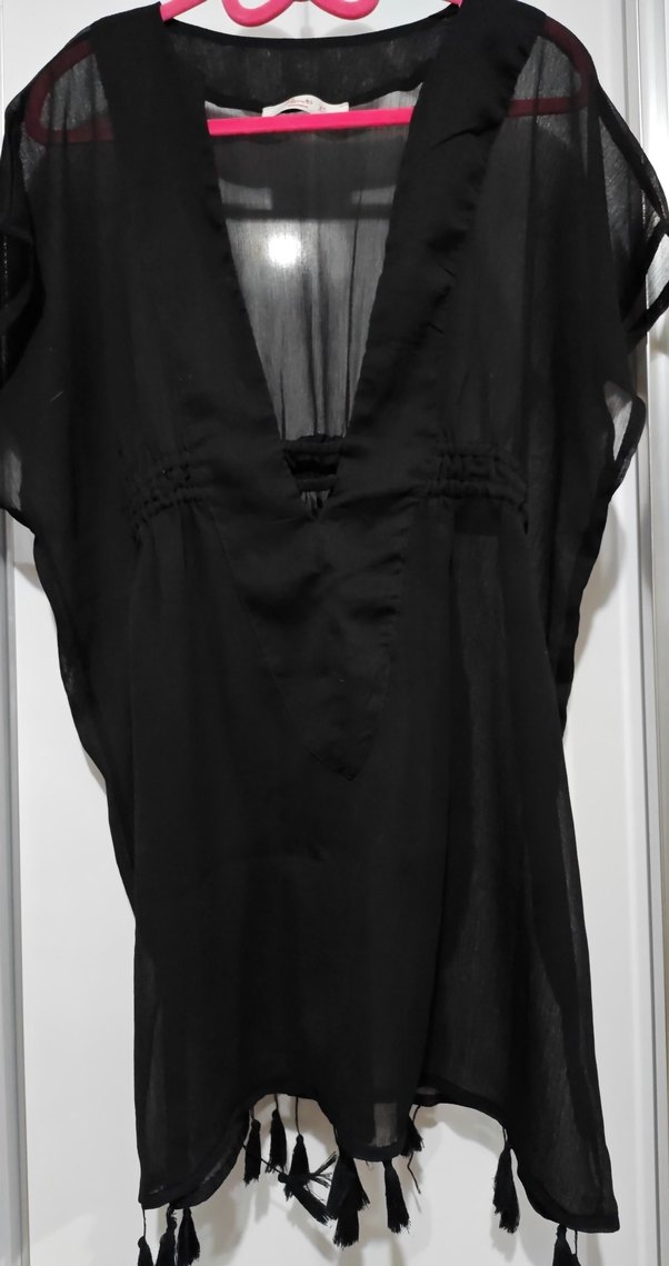Siyah V Yaka Dökümlü Plaj Kıyafeti