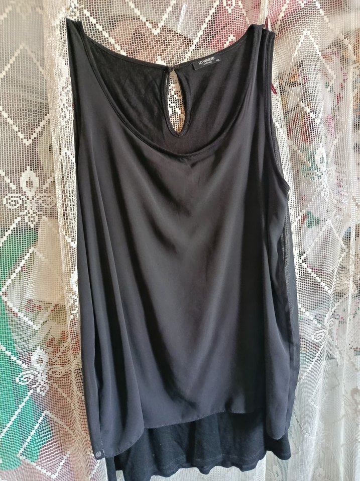 Dökümlü, V yakalı, kolsuz tunik. İpeksi kumaştan, uzun boylu ve gevşek kesim, siyah renkte gotik tarzda günlük kullanım için uygun.