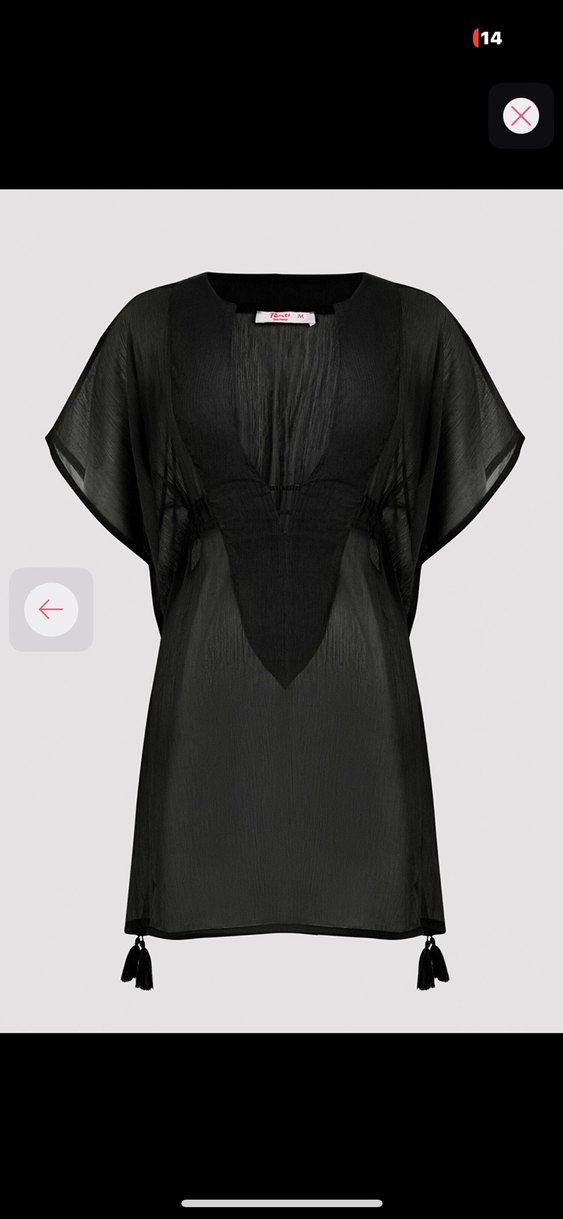 Siyah, V yakalı, dökümlü ve kısa kollu pareo İpek gibi kumaştan, uzun boylu ve gotik tarzda, günlük kullanıma uygun.
